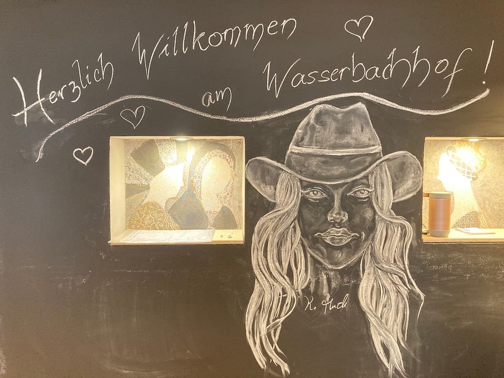 Das Infoboard in der Küche des Design Apartments am Wassserbachhof lädt unsere Gäste immer wieder zu kreativen Aufzeichnungen am Tafelboard ein.